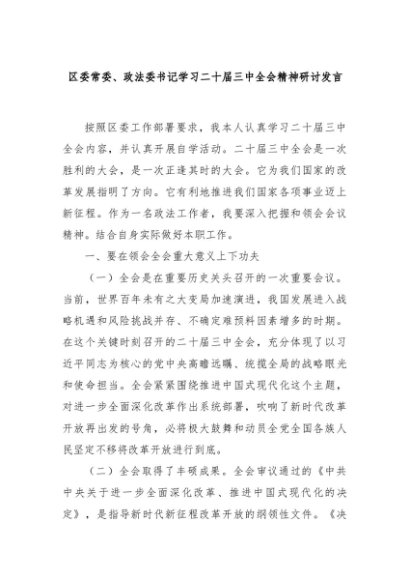 【七哥公文】2024年:区委常委、政法委书记学习二十届三中全会精神研讨发言+更多免费公文+VX:QiGeGongWen2024