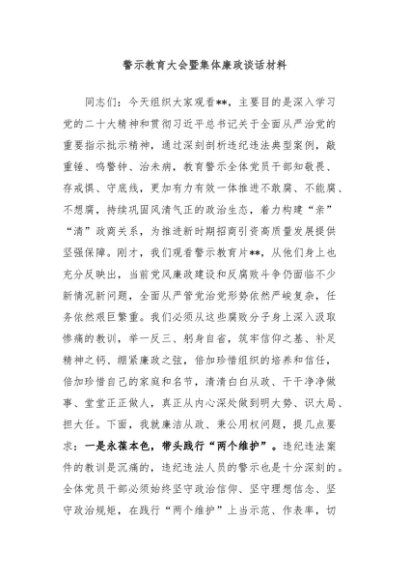 / 【七哥公文】2024年:警示教育大会暨集体廉政谈话材料+更多免费公文+VX:QiGeGongWen2024