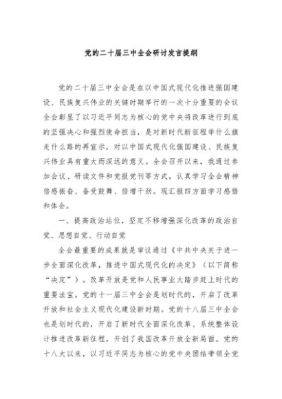 【七哥公文】2024年:党的二十届三中全会研讨发言提纲+更多免费公文+VX:QiGeGongWen2024