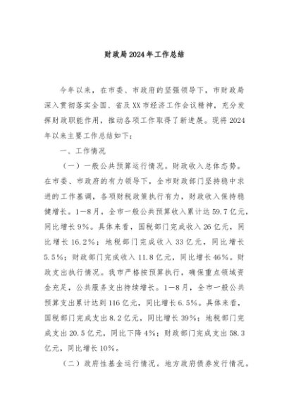 / 【七哥公文】2024年:财政局2024年工作总结+更多免费公文+VX:QiGeGongWen2024