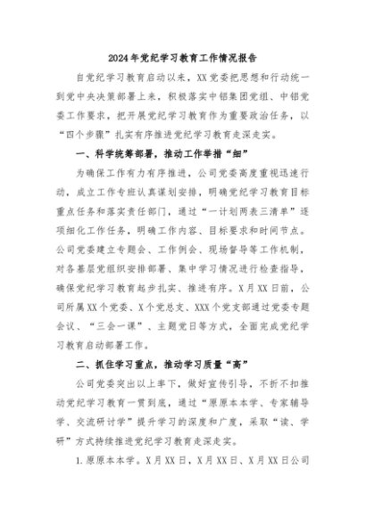 / 【七哥公文】2024年:2024年党纪学习教育工作情况报告+更多免费公文+VX:QiGeGongWen2024