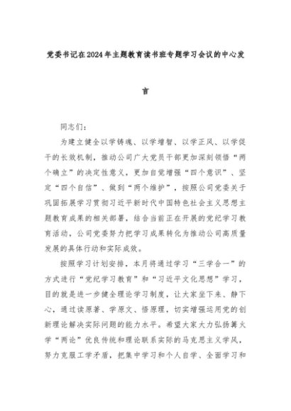 【七哥公文】2024年:党委书记在2024年主题教育读书班专题学习会议的中心发言+更多免费公文+VX:QiGeGongWen2024