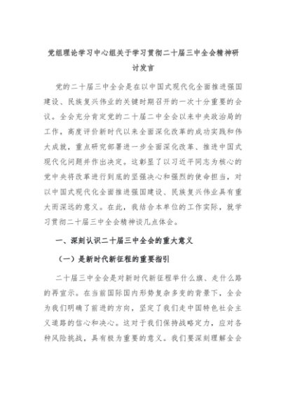 【七哥公文】2024年:党组理论学习中心组关于学习贯彻二十届三中全会精神研讨发言+更多免费公文+VX:QiGeGongWen2024