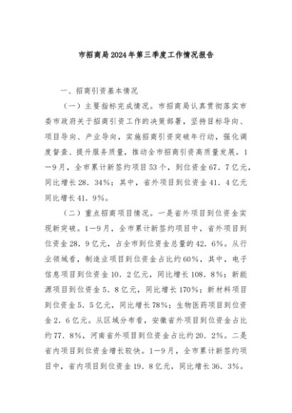 / 【七哥公文】2024年:市招商局2024年第三季度工作情况报告+更多免费公文+VX:QiGeGongWen2024