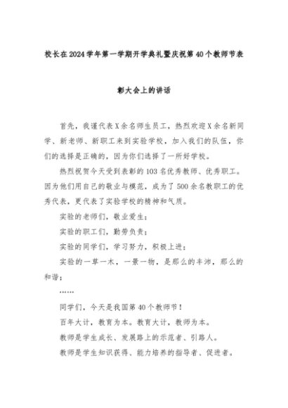 【七哥公文】2024年:校长在2024学年第一学期开学典礼暨庆祝第40个教师节表彰大会上的讲话+更多免费公文+VX:QiGeGongWen2024