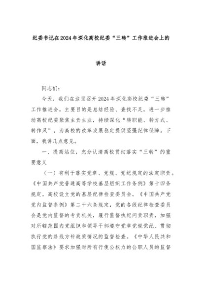 【七哥公文】2024年:纪委书记在2024年深化高校纪委“三转”工作推进会上的讲话+更多免费公文+VX:QiGeGongWen2024