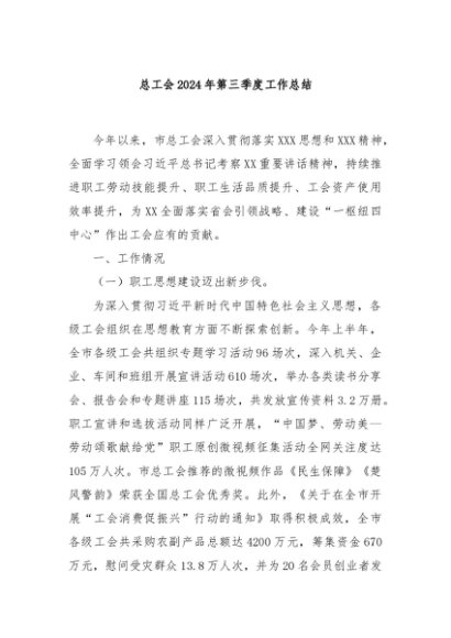 / 【七哥公文】2024年:总工会2024年第三季度工作总结+更多免费公文+VX:QiGeGongWen2024
