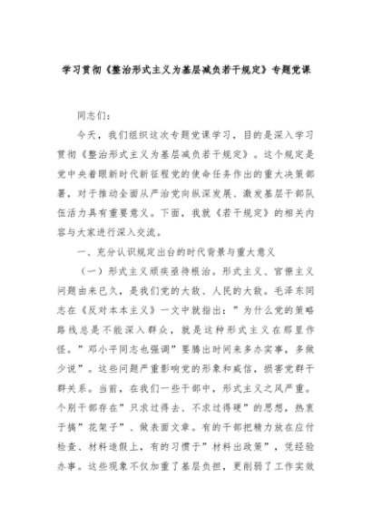 【七哥公文】2024年:学习贯彻《整治形式主义为基层减负若干规定》专题党课+更多免费公文+VX:QiGeGongWen2024