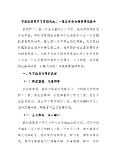 / 【七哥公文】2024年:市场监管局学习贯彻党的二十届三中全会精神情况报告+更多免费公文+VX:QiGeGongWen2024