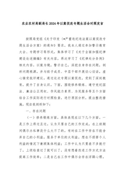 【七哥公文】2024年:农业农村局副局长2024年以案促改专题生活会对照发言+更多免费公文+VX:QiGeGongWen2024
