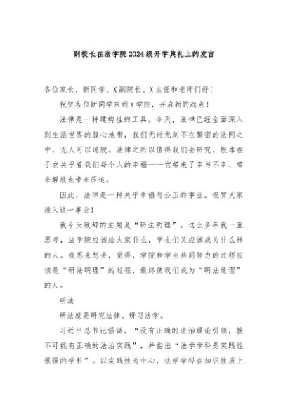 【七哥公文】2024年:副校长在法学院2024级开学典礼上的发言+更多免费公文+VX:QiGeGongWen2024