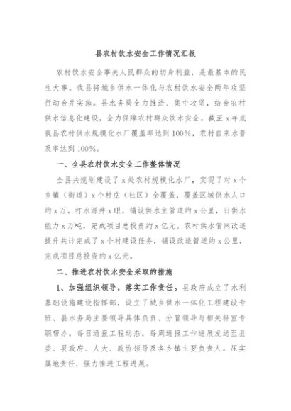 / 【七哥公文】2024年:县农村饮水安全工作情况汇报+更多免费公文+VX:QiGeGongWen2024