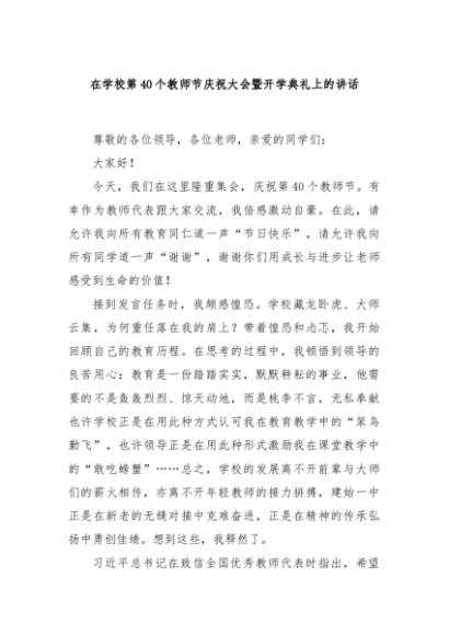 / 【七哥公文】2024年:在学校第40个教师节庆祝大会暨开学典礼上的讲话+更多免费公文+VX:QiGeGongWen2024