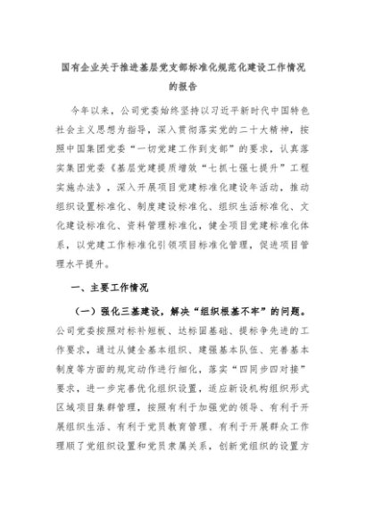 【七哥公文】2024年:国有企业关于推进基层党支部标准化规范化建设工作情况的报告+更多免费公文+VX:QiGeGongWen2024