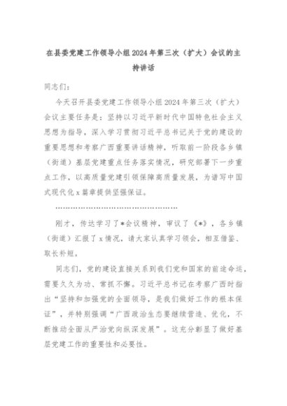 【七哥公文】2024年:在县委党建工作领导小组2024年第三次(扩大)会议的主持讲话+更多免费公文+VX:QiGeGongWen2024
