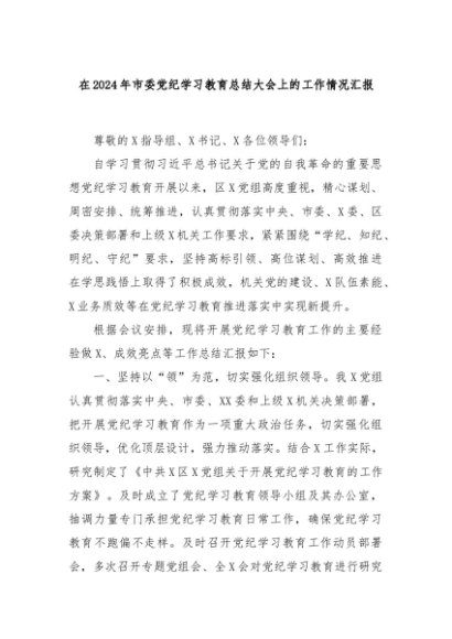 【七哥公文】2024年:在2024年市委党纪学习教育总结大会上的工作情况汇报+更多免费公文+VX:QiGeGongWen2024