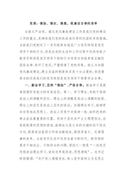 / 【七哥公文】2024年:党课:慎独、慎权、慎微,做廉洁自律的表率+更多免费公文+VX:QiGeGongWen2024