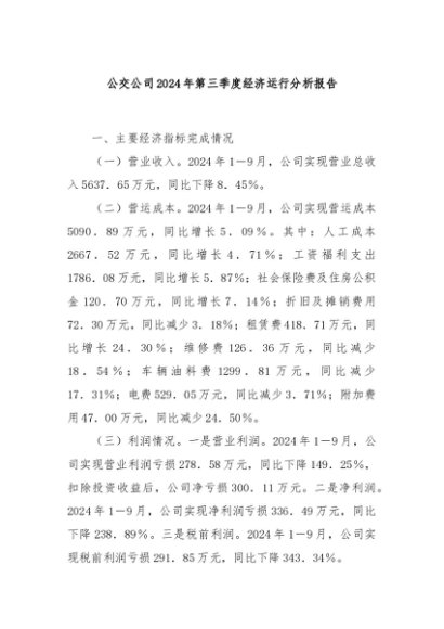 / 【七哥公文】2024年:公交公司2024年第三季度经济运行分析报告+更多免费公文+VX:QiGeGongWen2024