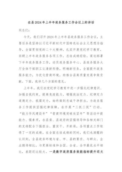 / 【七哥公文】2024年:在县2024年上半年政务服务工作会议上的讲话+更多免费公文+VX:QiGeGongWen2024
