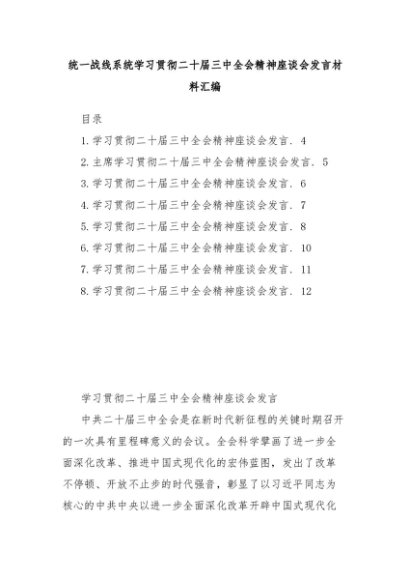 【七哥公文】2024年:统一战线系统学习贯彻二十届三中全会精神座谈会发言材料汇编 (1)+更多免费公文+VX:QiGeGongWen2024