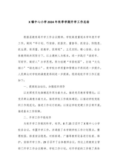 / 【七哥公文】2024年:X镇中心小学2024年秋季学期开学工作总结+更多免费公文+VX:QiGeGongWen2024