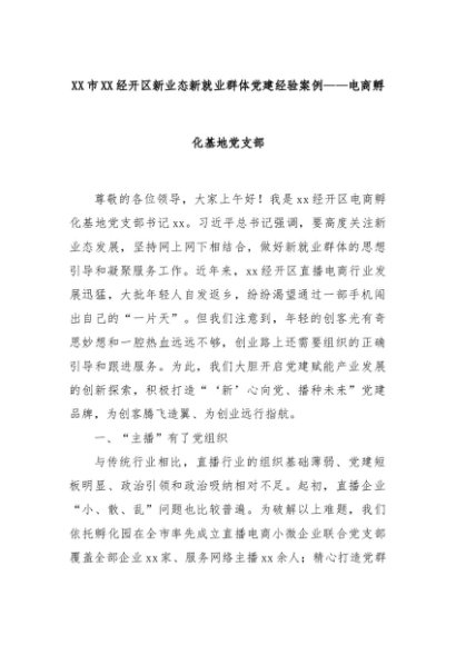 【七哥公文】2024年:XX市XX经开区新业态新就业群体党建经验案例——电商孵化基地党支部+更多免费公文+VX:QiGeGongWen2024