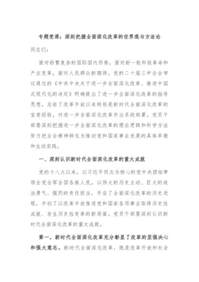/ 【七哥公文】2024年:专题党课:深刻把握全面深化改革的世界观与方法论+更多免费公文+VX:QiGeGongWen2024