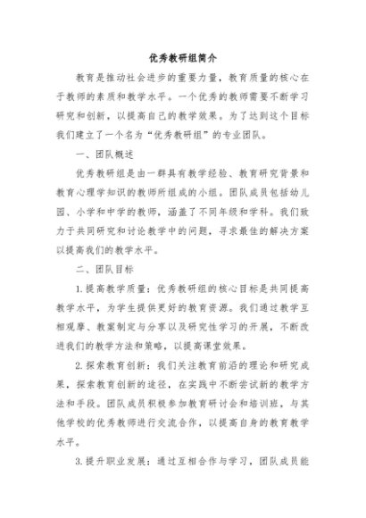/ 【七哥公文】2024年:优秀教研组简介+更多免费公文+VX:QiGeGongWen2024