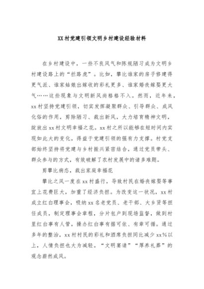 / 【七哥公文】2024年:XX村党建引领文明乡村建设经验材料+更多免费公文+VX:QiGeGongWen2024