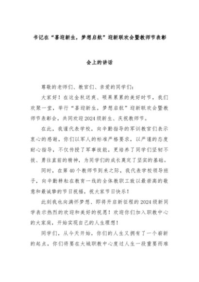 【七哥公文】2024年:书记在“喜迎新生,梦想启航”迎新联欢会暨教师节表彰会上的讲话+更多免费公文+VX:QiGeGongWen2024