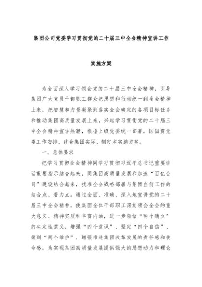 【七哥公文】2024年:集团公司党委学习贯彻党的二十届三中全会精神宣讲工作实施方案 (1)+更多免费公文+VX:QiGeGongWen2024