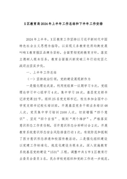 【七哥公文】2024年:X区教育局2024年上半年工作总结和下半年工作安排+更多免费公文+VX:QiGeGongWen2024