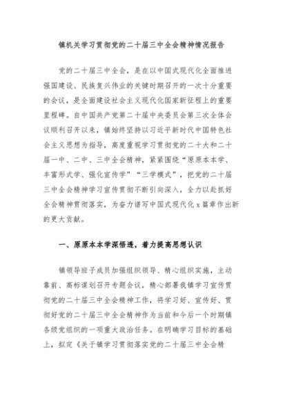 【七哥公文】2024年:镇机关学习贯彻党的二十届三中全会精神情况报告 (1)+更多免费公文+VX:QiGeGongWen2024