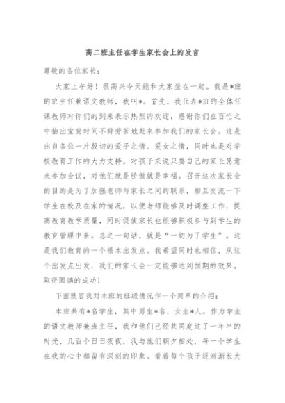/ 【七哥公文】2024年:高二班主任在学生家长会上的发言+更多免费公文+VX:QiGeGongWen2024