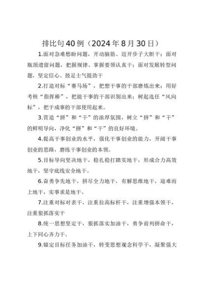 【七哥公文】2024年:排比句40例2024年8月30日1+更多免费公文+VX:QiGeGongWen2024