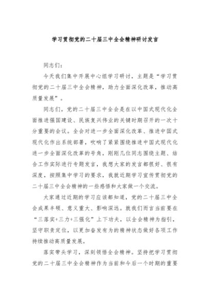/ 【七哥公文】2024年:学习贯彻党的二十届三中全会精神研讨发言 (1)+更多免费公文+VX:QiGeGongWen2024