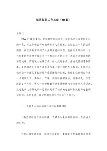 / 【七哥公文】2024年:20篇试用期的工作总结+更多免费公文+VX:QiGeGongWen2024