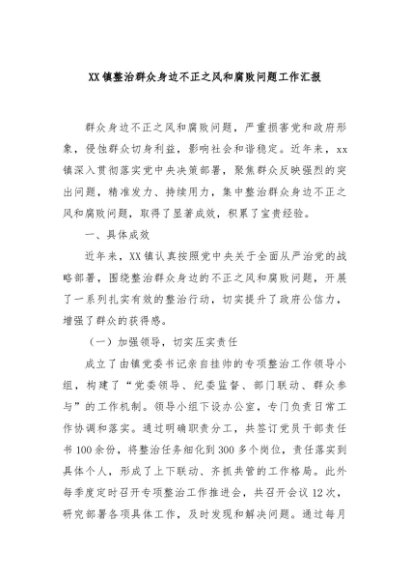 / 【七哥公文】2024年:XX镇整治群众身边不正之风和腐败问题工作汇报+更多免费公文+VX:QiGeGongWen2024