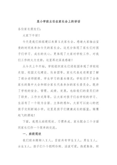 / 【七哥公文】2024年:某小学班主任在家长会上的讲话+更多免费公文+VX:QiGeGongWen2024