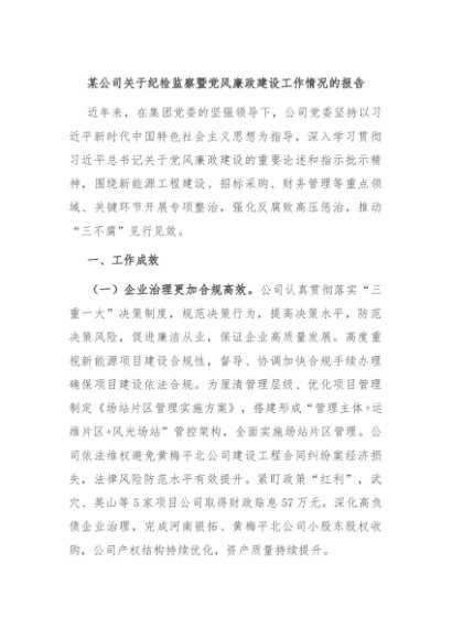 / 【七哥公文】2024年:某公司关于纪检监察暨党风廉政建设工作情况的报告+更多免费公文+VX:QiGeGongWen2024