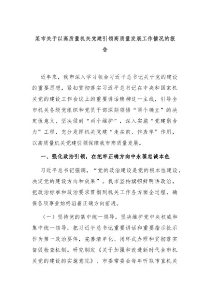 【七哥公文】2024年:某市关于以高质量机关党建引领高质量发展工作情况的报告+更多免费公文+VX:QiGeGongWen2024