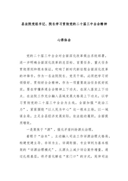【七哥公文】2024年:县法院党组书记、院长学习贯彻党的二十届三中全会精神心得体会 (1)+更多免费公文+VX:QiGeGongWen2024