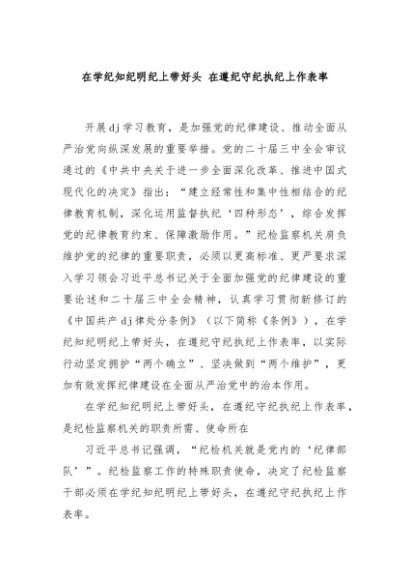 / 【七哥公文】2024年:在学纪知纪明纪上带好头 在遵纪守纪执纪上作表率+更多免费公文+VX:QiGeGongWen2024