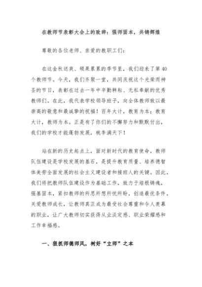 【七哥公文】2024年:在教师节表彰大会上的致辞:强师固本,共铸辉煌+更多免费公文+VX:QiGeGongWen2024