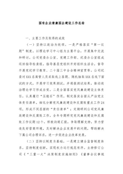 / 【七哥公文】2024年:国有企业清廉国企建设工作总结+更多免费公文+VX:QiGeGongWen2024