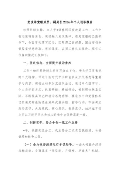 / 【七哥公文】2024年:发改局党组成员、副局长2024年个人述职报告+更多免费公文+VX:QiGeGongWen2024