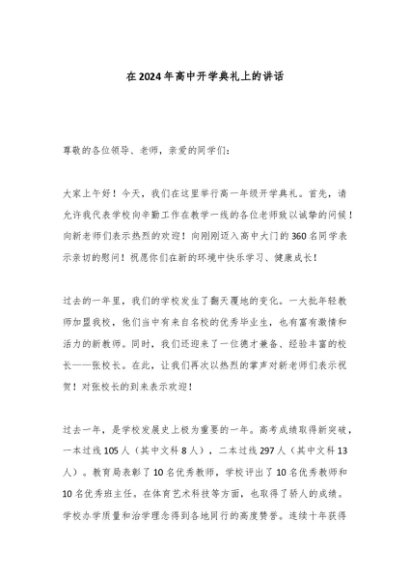 【七哥公文】2024年:在2024年高中开学典礼上的讲话+更多免费公文+VX:QiGeGongWen2024