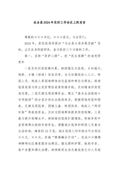 / 【七哥公文】2024年:在全县2024年农村工作会议上的发言+更多免费公文+VX:QiGeGongWen2024