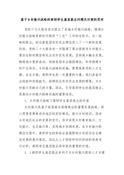 【七哥公文】2024年:基于乡村振兴战略的高职学生基层就业问题及对策的思考+更多免费公文+VX:QiGeGongWen2024