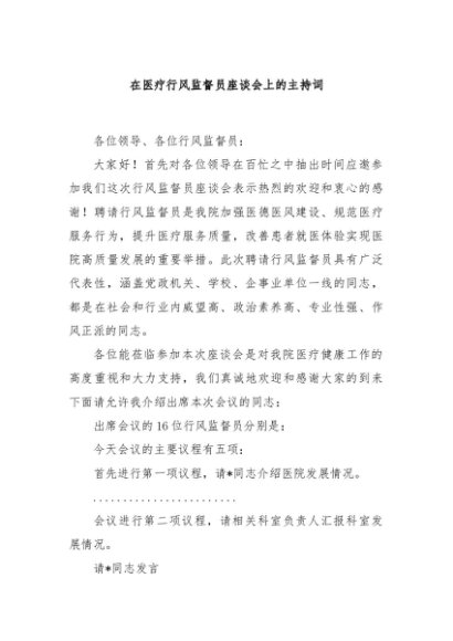 / 【七哥公文】2024年:在医疗行风监督员座谈会上的主持词+更多免费公文+VX:QiGeGongWen2024